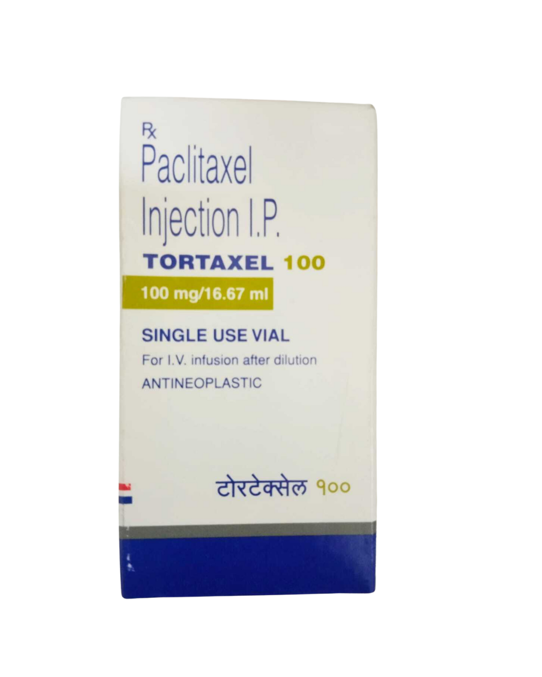 Tortaxel 100mg Injection is an anticancer medication used to treat breast cancer, non-small cell lung cancer, ovarian cancer, and AIDS-related cancers. Cancer occurs when cells divide and grow uncontrollably. This injection may be given alone or in combination with other anticancer drugs. It should not be used in patients with severe liver problems, uncontrolled infections, or low white blood cell or platelet counts.