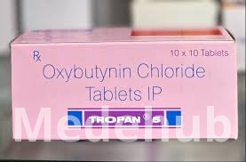 Tropan 5mg Tablet contains Oxybutynin, an anticholinergic medication primarily used to treat symptoms of overactive bladder (OAB) and neurogenic detrusor overactivity. It works by relaxing the smooth muscle of the bladder, thereby increasing bladder capacity and reducing the frequency of involuntary bladder contractions. This action helps to alleviate symptoms such as urinary urgency, frequency, and urge incontinence. Oxybutynin exerts its effects by blocking muscarinic receptors in the bladder, which are responsible for mediating bladder contraction. Its oral formulation provides systemic relief, improving bladder control and enhancing the quality of life for individuals affected by these conditions. The therapeutic goal is to reduce the disruptive impact of OAB symptoms on daily activities and improve patient comfort and confidence.