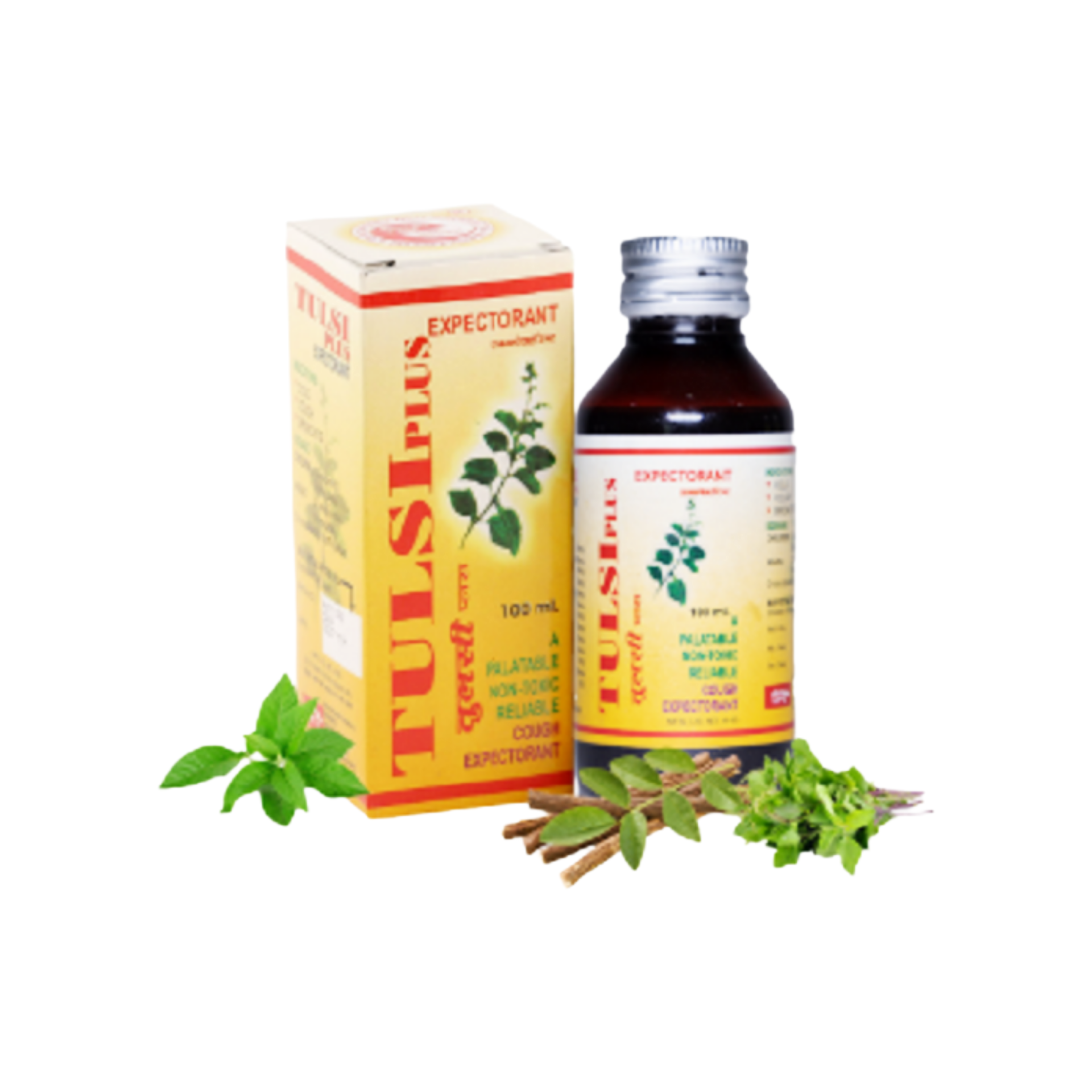 Tulsi S/F Expectorant is an herbal formulation, sugar-free, designed to alleviate productive cough and chest congestion. Its primary active ingredient is an extract of Tulsi (Ocimum sanctum), also known as Holy Basil, which is revered in traditional medicine for its adaptogenic, anti-inflammatory, and immunomodulatory properties. As an expectorant, it works by helping to thin and loosen tenacious mucus and phlegm accumulated in the respiratory tract, making it easier to expel through coughing. This action helps to clear congested airways, reduce chest tightness, and promote clearer breathing. The natural compounds in Tulsi also contribute to soothing irritated respiratory passages and may offer mild bronchodilatory effects, providing gentle yet effective relief from common cold symptoms without the added sugar.
