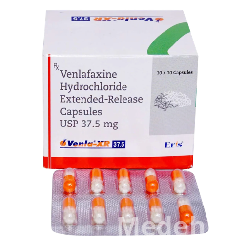 VENLA XR 37.5 TAB contains Venlafaxine, a serotonin-norepinephrine reuptake inhibitor (SNRI) antidepressant, which is a highly effective medication used to treat a range of mental health conditions including major depressive disorder, generalized anxiety disorder, social anxiety disorder, and panic disorder. It works by increasing the levels of two key neurotransmitters, serotonin and norepinephrine, in the brain. These chemicals play a vital role in regulating mood, emotions, and stress responses. By restoring the balance of these neurotransmitters, Venlafaxine helps to alleviate symptoms of depression and anxiety, improve mood, reduce feelings of worry, and restore interest in daily activities. The extended-release (XR) formulation ensures a sustained release of the drug, allowing for convenient once-daily dosing and maintaining consistent therapeutic levels throughout the day.