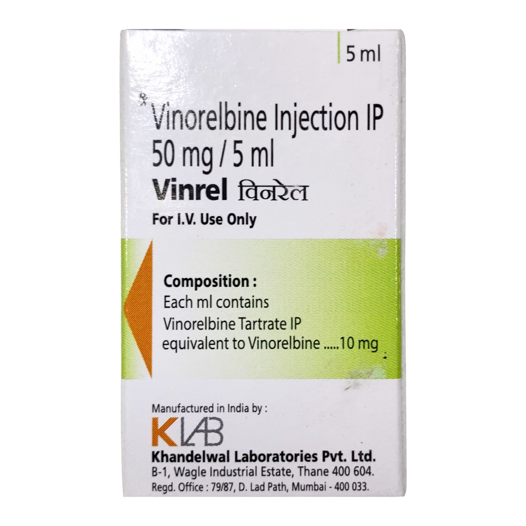 Vinrel 50mg Injection is an antineoplastic agent belonging to the class of vinca alkaloids, primarily used in the treatment of various cancers. This medication works by disrupting the formation of microtubules, which are essential components of the cell's cytoskeleton and play a critical role in cell division. By inhibiting microtubule assembly, Vinrel arrests cancer cells during the metaphase of mitosis, preventing them from dividing and proliferating. This targeted action leads to the death of rapidly dividing cancer cells, thereby slowing tumor growth and progression. Due to its potent cytotoxic effects, Vinrel is typically administered intravenously under strict medical supervision, often as part of a multi-drug chemotherapy regimen. Careful monitoring for dose-limiting toxicities and adverse effects is crucial throughout the treatment period to ensure patient safety and optimize therapeutic outcomes.