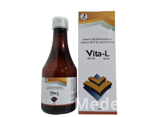 Vitap L Syrup is a nutritional supplement designed to provide essential vitamins and potentially amino acids, such as L-Lysine, to support overall health and well-being. It typically combines a spectrum of B-complex vitamins, which are vital for energy metabolism, nerve function, and red blood cell formation, with other key nutrients. The inclusion of L-Lysine, if present, further enhances its role by supporting protein synthesis, calcium absorption, and immune function, making it particularly beneficial for growth and tissue repair.