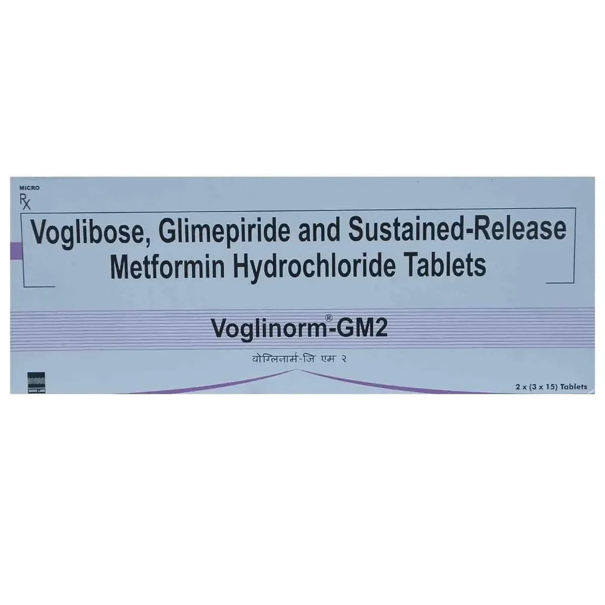 Voglinorm GM 2 Tab is a combination medication designed for the comprehensive management of type 2 diabetes mellitus, integrating the actions of Voglibose, Glibenclamide, and Metformin. Voglibose, an alpha-glucosidase inhibitor, works by delaying the digestion and absorption of carbohydrates in the small intestine, thereby significantly reducing post-prandial (after-meal) blood glucose spikes. Glibenclamide, a sulfonylurea, stimulates the pancreatic beta cells to release more insulin, which helps to lower blood sugar levels throughout the day.