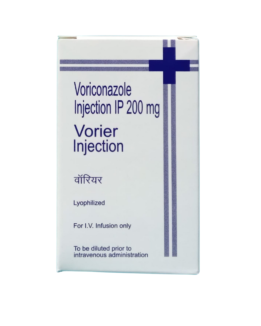 Vorier 200mg Injection is a prescription antifungal medication containing the active ingredient Voriconazole. It belongs to a class of drugs known as fungal ergosterol synthesis inhibitors, which work by disrupting the formation of fungal cell membranes. This injection is used to treat serious and potentially life-threatening fungal infections, especially in high-risk patients, such as those who have undergone bone marrow transplants. It is not recommended for use in children under 2 years of age.