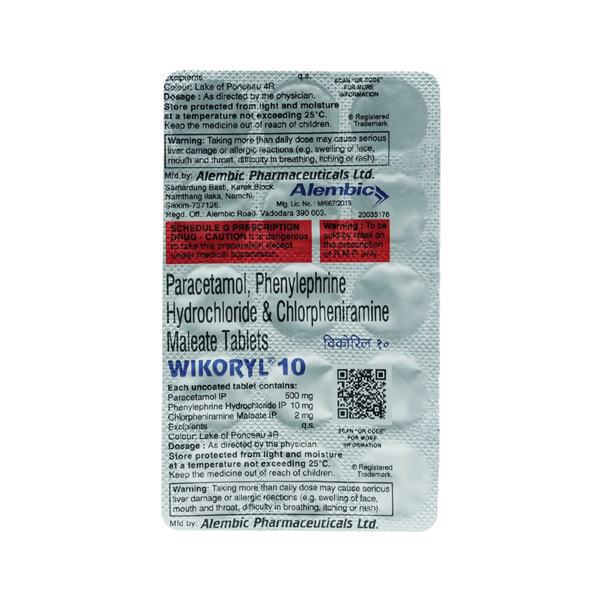 Wikoryl Tablet is a comprehensive multi-ingredient formulation designed to provide effective symptomatic relief from the common cold and influenza. This medication typically combines an analgesic and antipyretic agent, such as paracetamol, to reduce fever and alleviate body aches and headaches. It also includes a nasal decongestant, often phenylephrine, which works by constricting blood vessels in the nasal passages to reduce swelling and congestion, thereby improving breathing. Furthermore, an antihistamine, such as cetirizine or chlorpheniramine, is usually incorporated to counteract histamine-mediated symptoms like sneezing, runny nose, and watery eyes. This synergistic blend of active ingredients targets multiple symptoms simultaneously, offering broad-spectrum relief and enhancing patient comfort during the course of a cold or flu, though it does not cure the underlying viral infection.