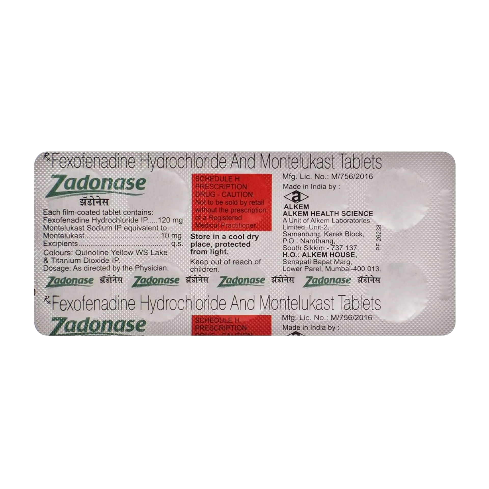 Zadonase tablets likely contain an active ingredient such as ketotifen, a non-bronchodilator antiasthmatic agent with potent antianaphylactic properties. It functions primarily as a mast cell stabilizer, preventing the release of inflammatory mediators like histamine, and also exhibits antihistaminic (H1-receptor antagonist) activity. This dual mechanism helps in the long-term management of allergic conditions by reducing hypersensitivity reactions and inflammation within the body.