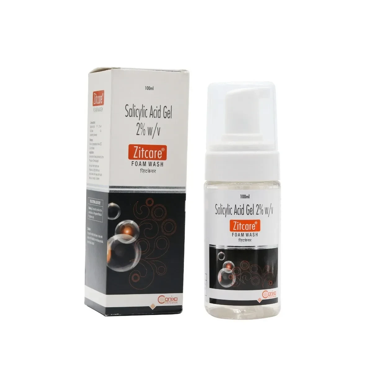 Zitcare Foam Wash is a dermatological preparation designed for the management of acne vulgaris. It typically contains active ingredients such as salicylic acid, glycolic acid, or benzoyl peroxide, which work synergistically to exfoliate the skin, unclog pores, reduce sebum production, and inhibit bacterial growth, particularly Propionibacterium acnes. Salicylic acid, a beta-hydroxy acid, penetrates oil-laden follicles to dissolve dead skin cells and excess sebum, preventing comedone formation. Glycolic acid, an alpha-hydroxy acid, promotes epidermal exfoliation and improves skin texture. This foam wash helps to reduce existing acne lesions and prevent new breakouts, leading to clearer and healthier-looking skin. Its foaming action ensures thorough cleansing and even distribution of active ingredients across the affected areas.